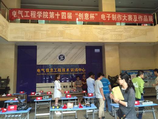 来自电气工程学院的53名同学精心制作的44件功能各异的电子创新创意作品参与了本次大赛的评比,电气工程学院院长段峻对展出的学生作品给予了充分肯定,在与学生交流时,他表示:学院会一如既往的大力支持学生创新设计,鼓励同学们在今后设计制作中多与新技术结合,多出实用新作品,把作品变为优秀产品推向市场。