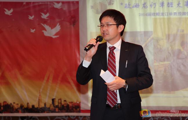 王天哲副书记代表学院热烈欢迎欧姆龙公司的各位领导出席本次联谊会,并对“欧姆龙班”成立两年来取得的成果表示高度肯定。随后,岩冈俊行部长代表该公司所有员工向学院领导、老师及欧姆龙班的全体学生致以新年的祝福,对各位领导和任课老师给予欧姆龙订单班的支持和帮助表示忠心的感谢,还为2013届欧姆龙班全体学生赠送新年礼物。